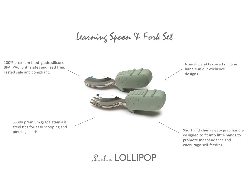 Loulou Lollipop Toddler Learning Spoon and Fork Set - Alligator