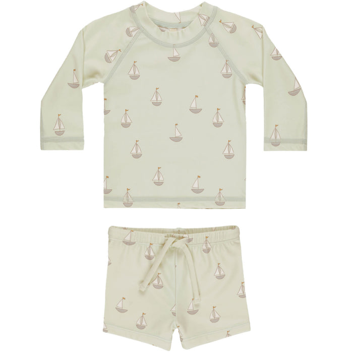 Quincy Mae Finn Rashguard + Short Set | Sailboats