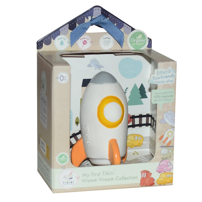 Tikiri Toys Natural Rubber Teether, Rattle & Bath Toy - Rocket