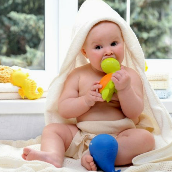 Tikiri Toys Natural Rubber Teether, Rattle & Bath Toy - Sea Horse
