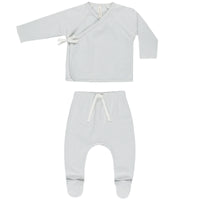 Quincy Mae Organic Wrap Top + Footed Pant Set | Sky Micro Stripe