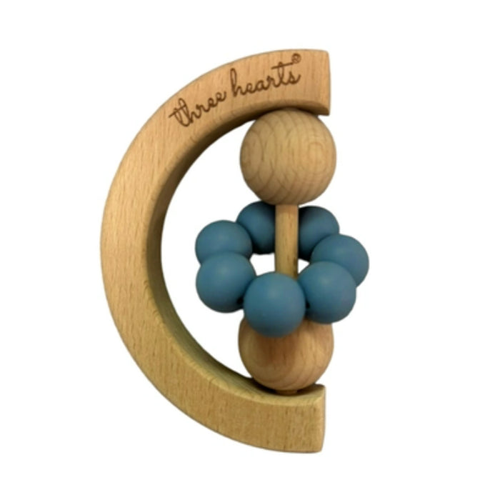 Three Hearts Silicone Seahorse Teething Ring - Slate