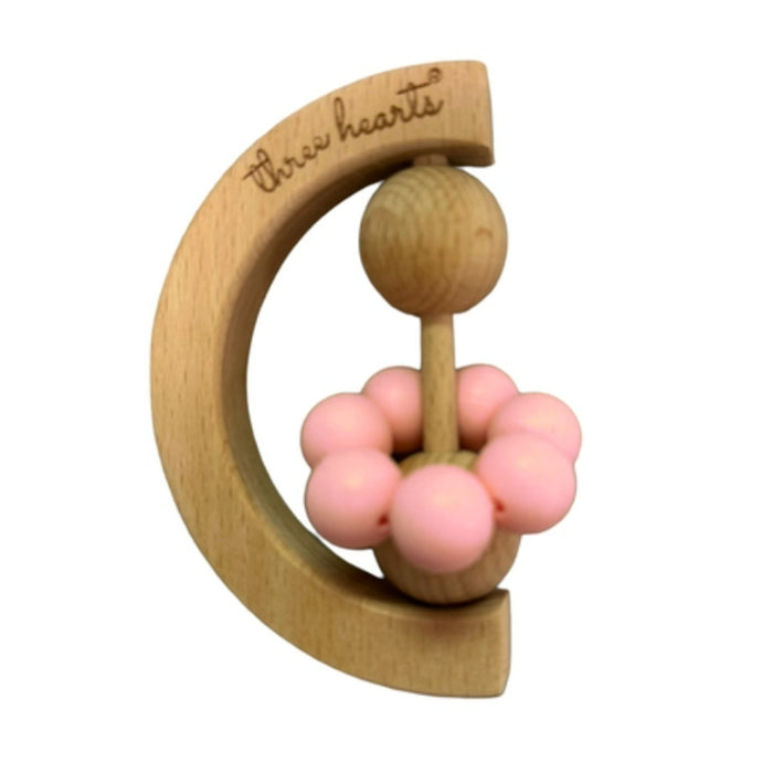 Three Hearts Silicone Teething Tube Teether Set - Dusty Rose/ Mauve